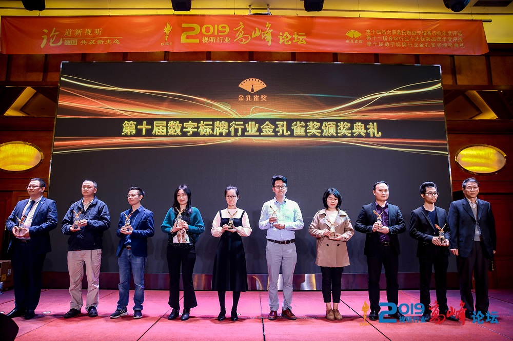 經(jīng)過近三個(gè)月的激烈角逐,數(shù)百家企業(yè)的競選,通過企業(yè)自薦、線上線下投票、專家評審等環(huán)節(jié),被譽(yù)為視聽行業(yè)“奧斯卡”的金孔雀獎(jiǎng)最終揭曉。憑借著出眾的技術(shù)創(chuàng)新能力、專業(yè)的物聯(lián)網(wǎng)產(chǎn)品實(shí)力及優(yōu)質(zhì)的客戶服務(wù),鼎盛智能榮膺 2019年度數(shù)字標(biāo)牌播放終端卓越貢獻(xiàn)大獎(jiǎng) 。